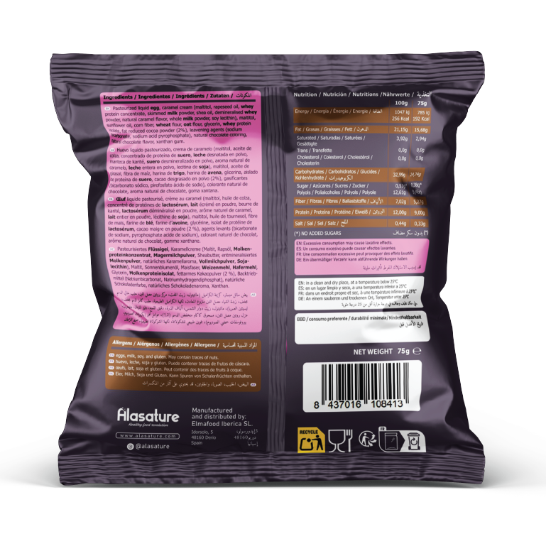Intense, creamy, and with a hint of caramel that takes it to the next level. This baked muffin blends the deep flavor of cocoa with a soft caramel center, creating a sweet and perfectly balanced experience. With 12% protein, no added sugar, and no palm oil, it’s the delicious way to take care of yourself without giving up a thing.
